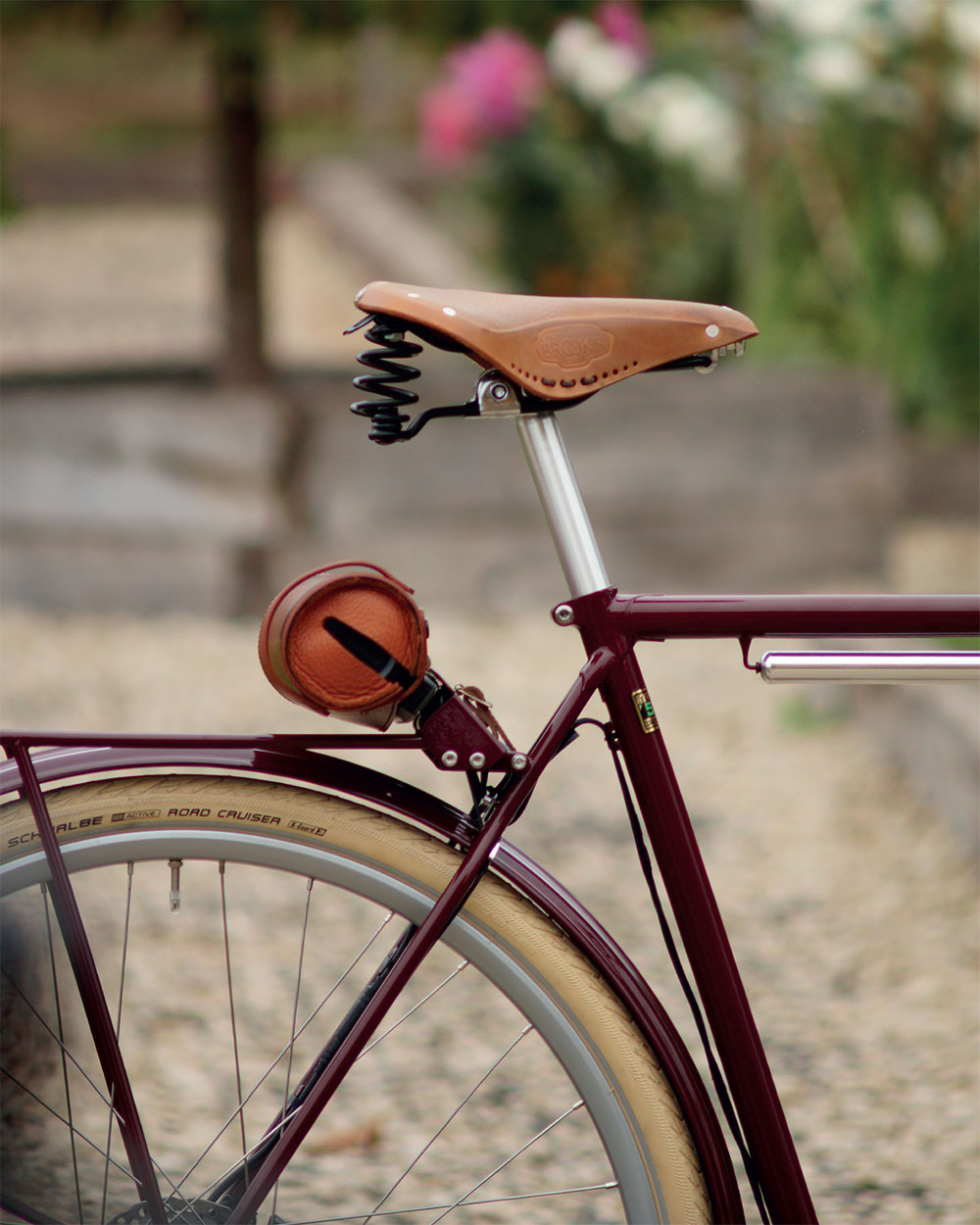 The Briton-E rolls with poise on its 700c wheels and classic cream Schwalbe tyres with added puncture protection, blending the comfort of a relaxed geometry with the agility of a lighter frame. Supple leather grips and a hand-made Brooks aged leather saddle, produced just thirty miles from our Stratford-upon-Avon workshop, add a final note of refinement. Over time, the saddle moulds perfectly to your form — a living reminder of every mile shared.