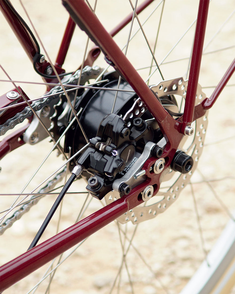 Traditionally lugged and brazed hand-crafted Reynolds 525 steel frame. 3D printed Stainless Steel seat lug. E-Coated for corrosion resistance and powder-coated.