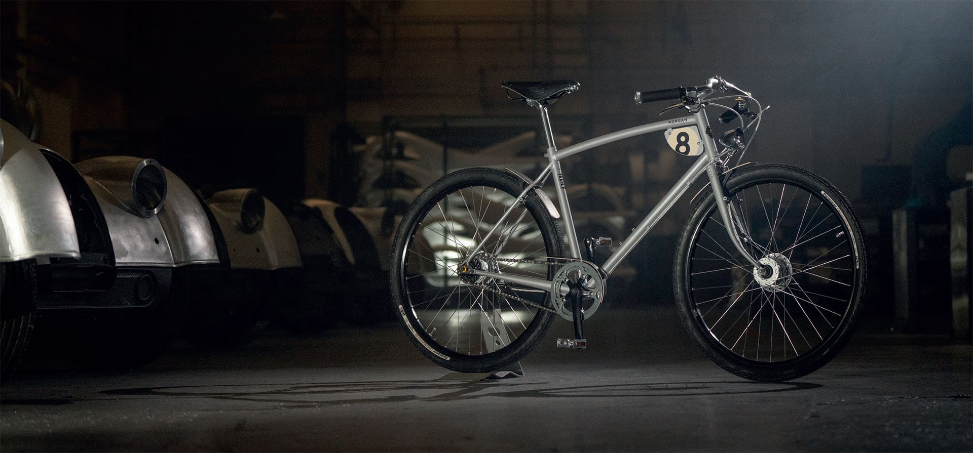 The most popular model in the Pashley-Morgan range, the '8' is finished in a monochromatic silver, deep glossy burgundy or our classic British racing green and features subtle livery inspired by the classic Morgan motorcars. With 'café racer' styling, this newest edition features all-leather contact points and a low-profile riding position for speedy riding.